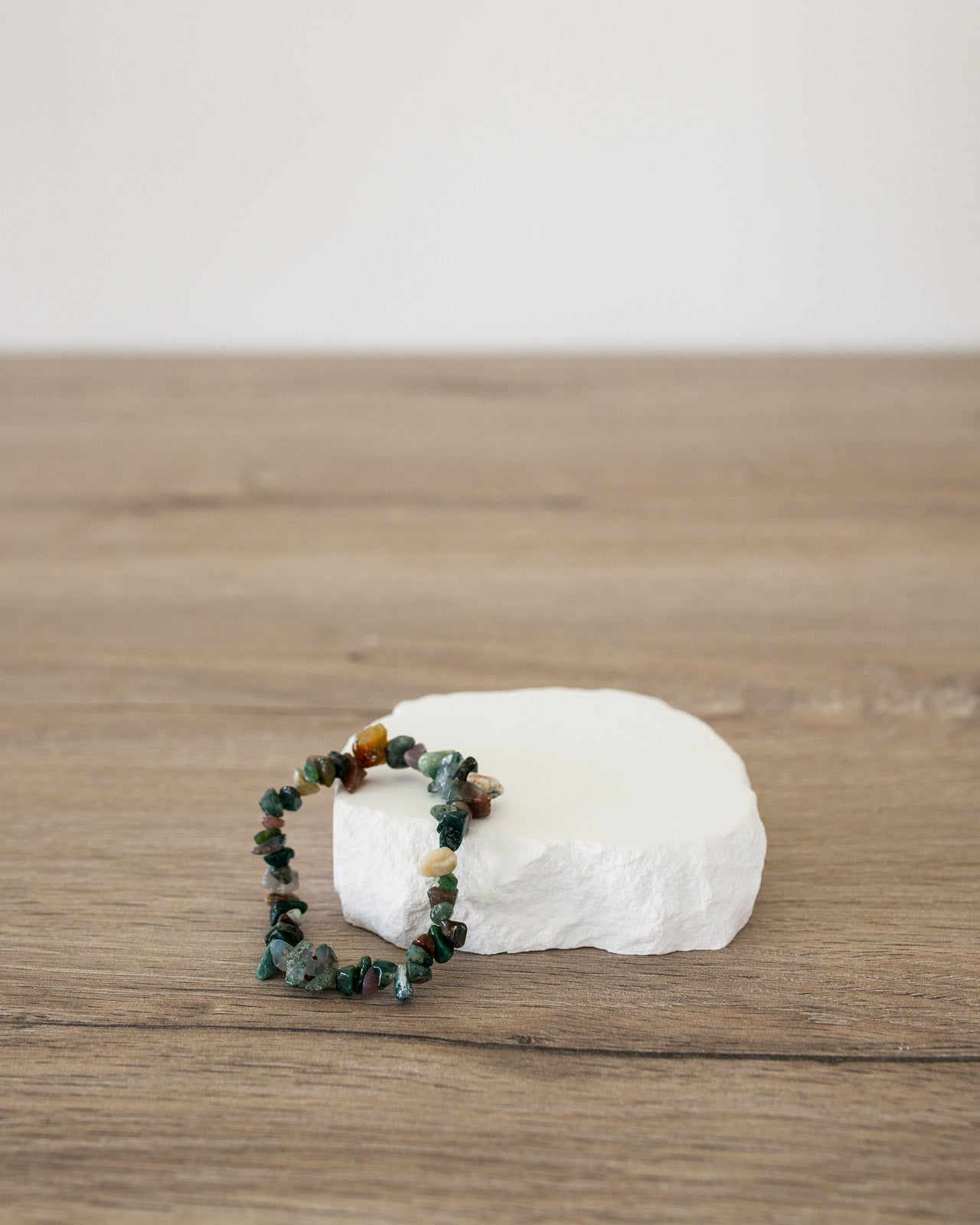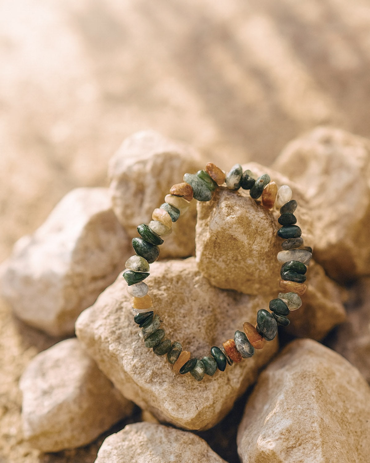 Le bracelet en pépites de pierres Agate Indienne aide à s’ancrer et à retrouver calme et confiance. Ses teintes chaudes naturelles diffusent énergie et équilibre.