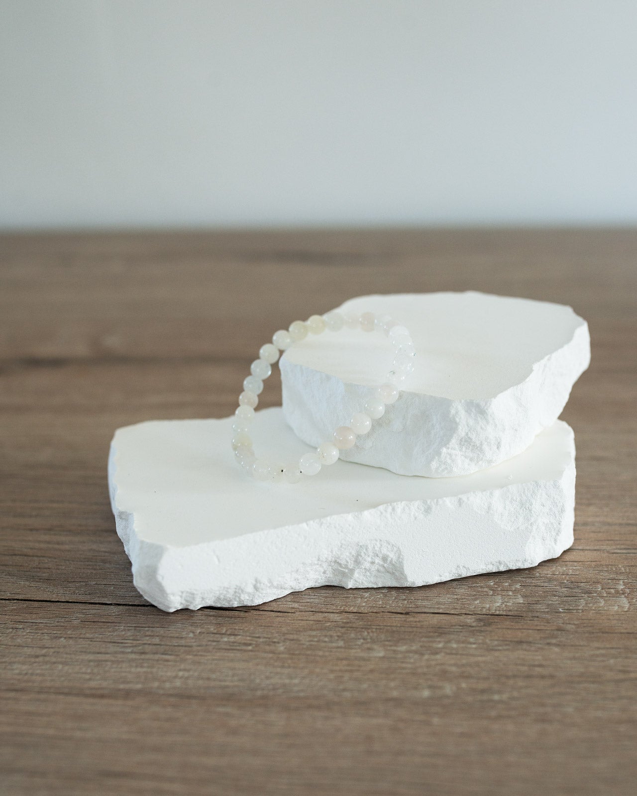 Le bracelet en perles de Pierre de Lune soutient les émotions et favorise la douceur dans les cycles de vie. Ses reflets nacrés rappellent la lueur apaisante de la lune.