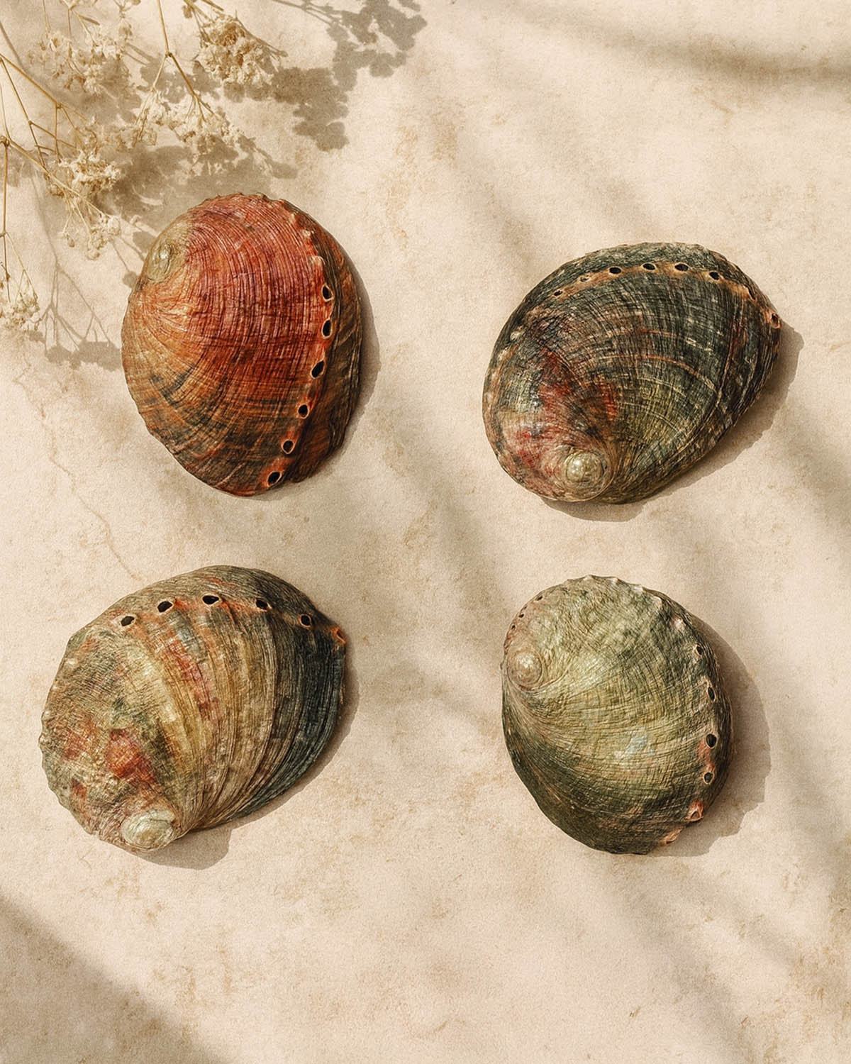 Le coquillage Abalone est un allié précieux pour vos rituels de purification et de fumigation. Sa surface nacrée reflète la lumière et symbolise la protection, l’harmonie et la connexion aux éléments marins. Idéal pour recueillir la fumée de vos bâtons de sauge ou de Palo Santo, il apporte une touche esthétique et spirituelle à vos pratiques.